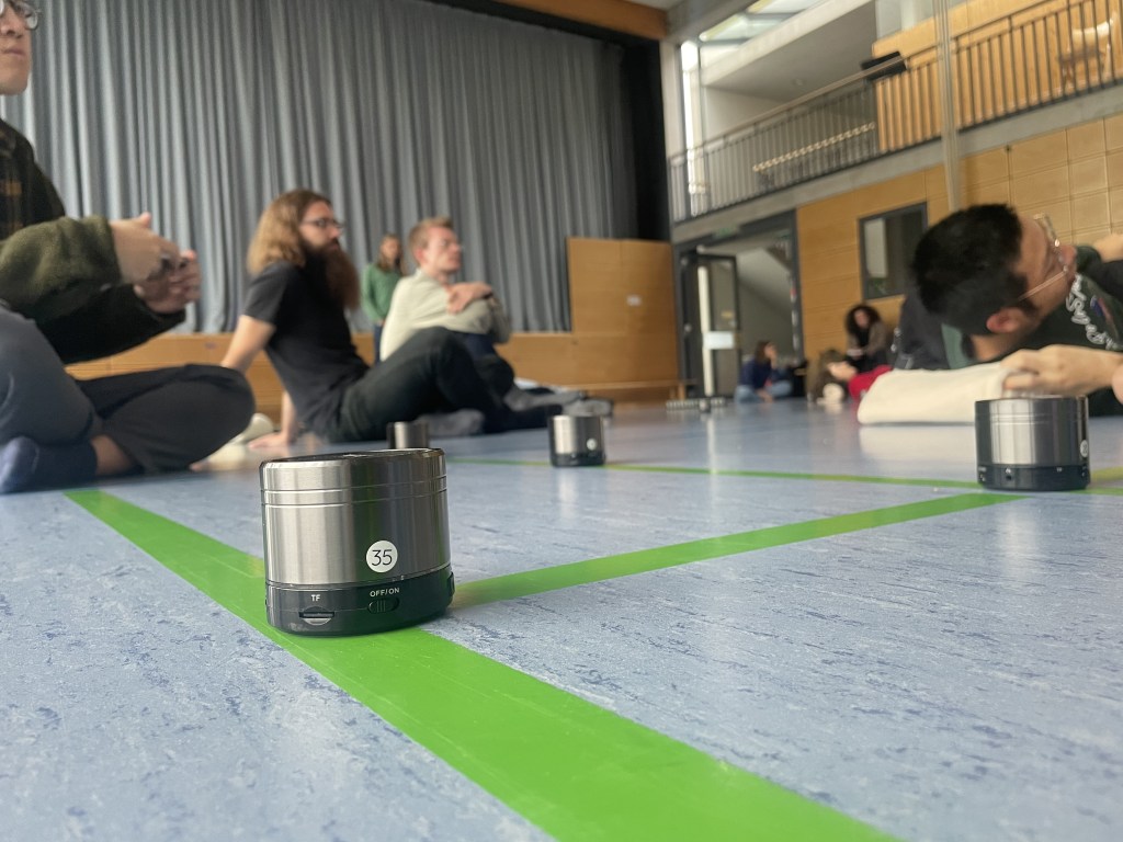 She showed different sound dome applications from USA, Canada, Germany and more. The students listening also gave examples from other places, like Israel. I distinctly remember thinking “Wow that’s a lot of sound domes”! It felt like the climax of the Avengers: Endgame movie where the small group of heroes are saved by other heroes arriving from around the universe saying “I’m also here”. Trossingen is definitely not the only place in the world busy with spatial audio chambers and that’s fantastic. After the seminar I invited Carrasco to visit Trossingen and see our progress with spatial audio. I really hope she does visit; I think she’s a very valuable teacher regarding this subject.